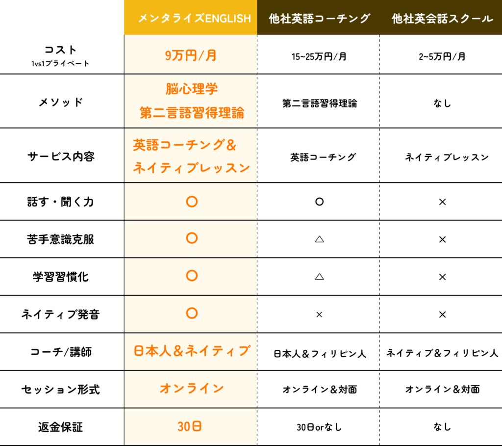日本初の脳心理学と第二言語習得理論を活用した完全オンライン英語コーチングを提供しており、英語学習におけるメンタルとスキルの両面の根本的課題を解決し、実践で使える本物の英語力を手に入れる短期集中の完全マンツーマン個人英語学習プログラム。